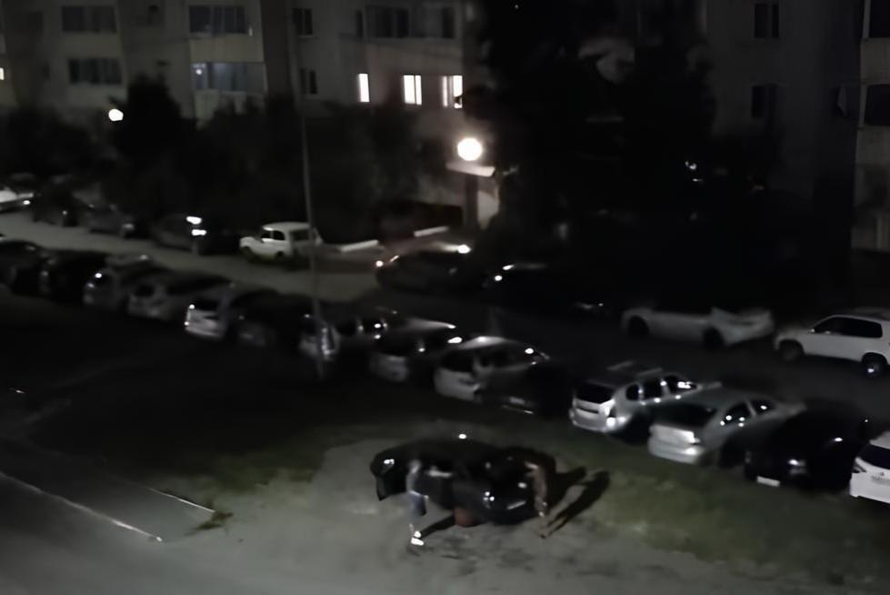 Ночь и трое в белых толстовках. Появилось видео, как в Тюмени вымазали навозом иномаркуШалость сняли с балкона рядом стоящего дома