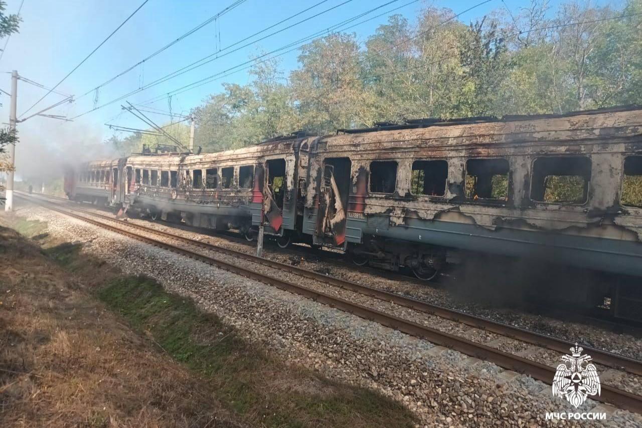 В Краснодарском крае сгорели три вагона поезда — кадрыСпециалисты выясняют, что случилось