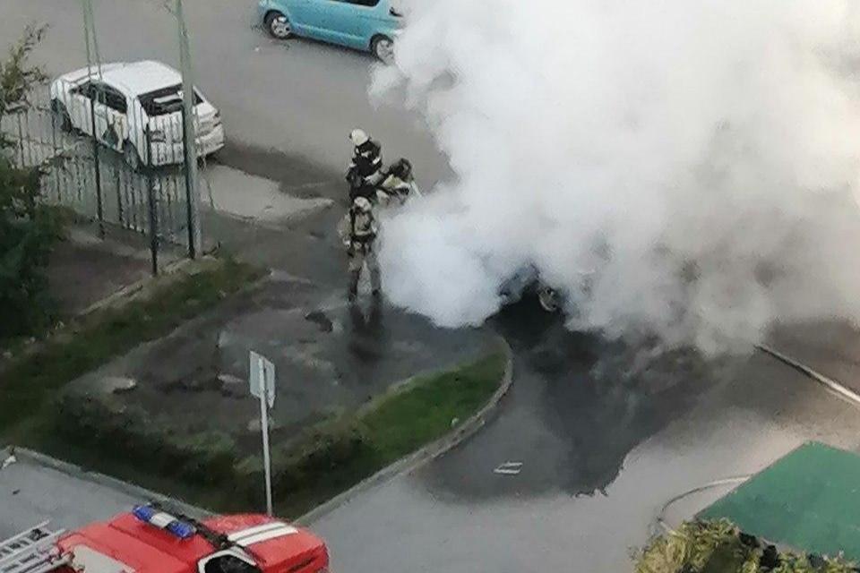 Весь двор был в дыму. В Тюмени с утра вспыхнула машина — видеоОчевидцы наблюдали за горящим авто из окон своих домов и с улицы