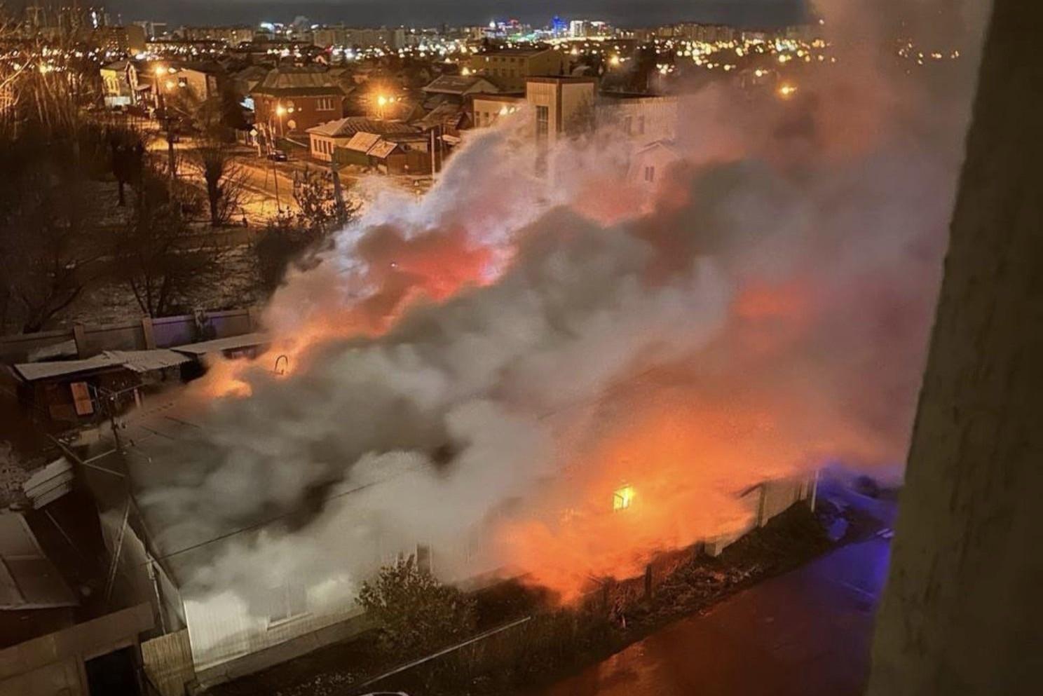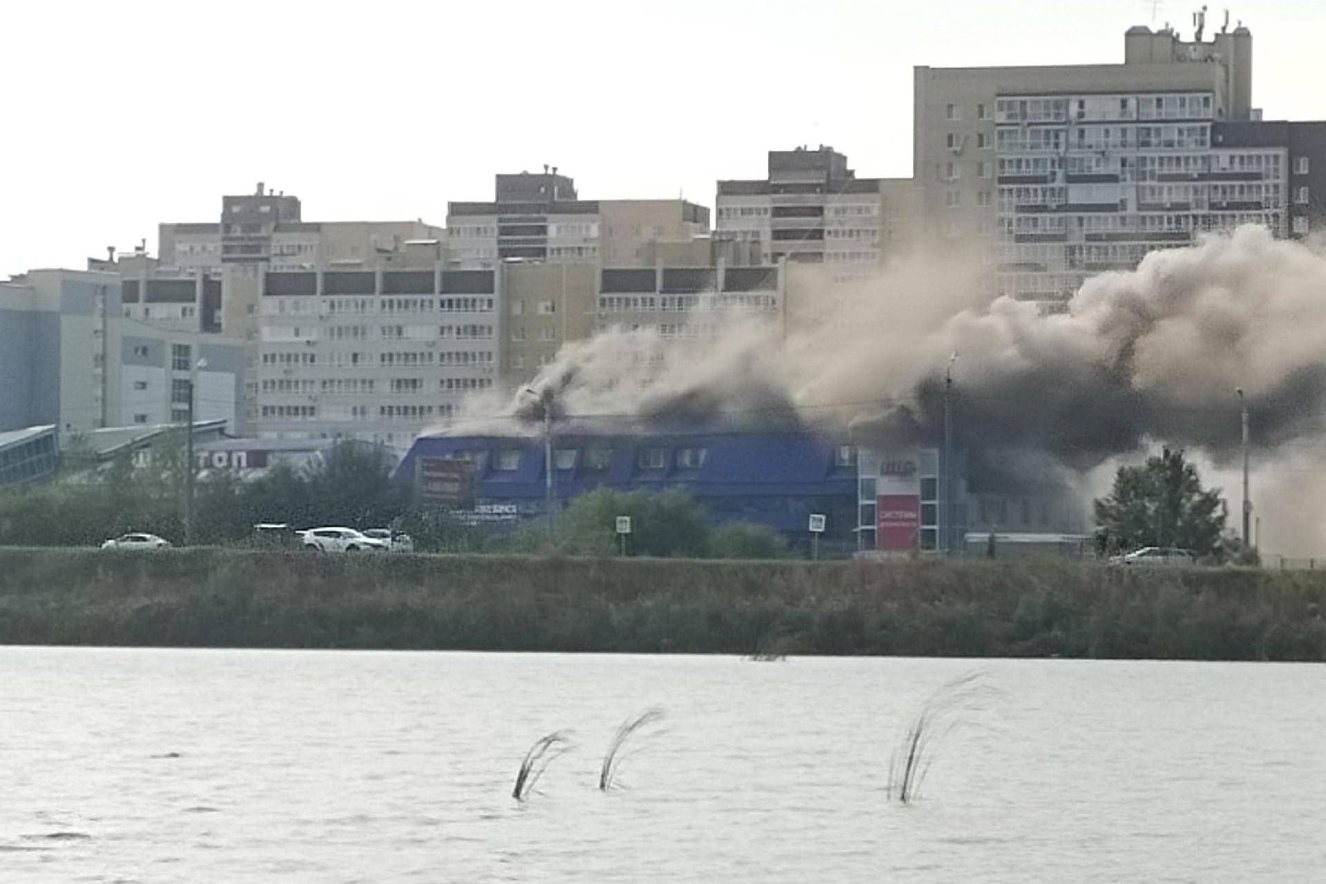 «Было слышно что-то типа взрыва»: в Зареке полыхает крыша автосалона — видеоСейчас на месте около десятка пожарных машин