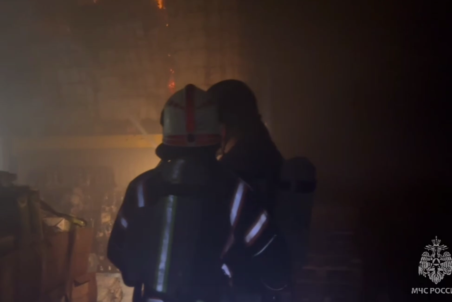 В Тюмени загорелся огромный склад «Светофора»: видео с полыхающими продуктамиС огнем боролись несколько десятков пожарных