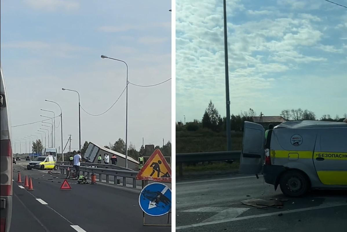 Фура протаранила машину дорожных рабочих. Подробности ДТП на тюменской трассеГрузовик выбросило с дороги